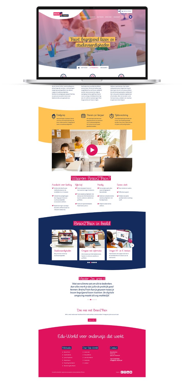 Van voor af aan mocht ik meewerken aan het nieuwe oefenprogramma Brain2Train van onderwijs uitgeverij Edu-World. Van het ontwerpen van een logo tot het uitwerken van de toetsafbeeldingen voor de online omgeving.