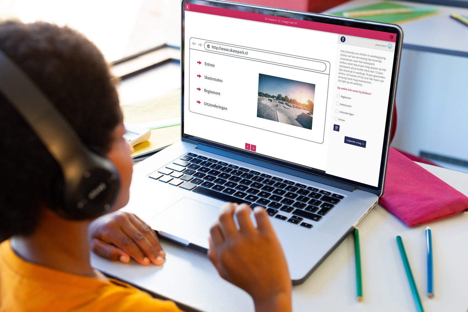 Bij het ontwikkelen van de huisstijl had ik volledig de vrije hand in het kiezen van kleuren, lettertypen en het creëren van vormen. Omdat het oefenprogramma gebruikt gaat worden op basisscholen, moest het een kindvriendelijke stijl krijgen. Hiervoor koos ik 3 kleuren als basis en werkte ik het uit in een kindvriendelijk en tijdloos logo. Met een huisstijl met goed leesbare en speelse lettertypes.