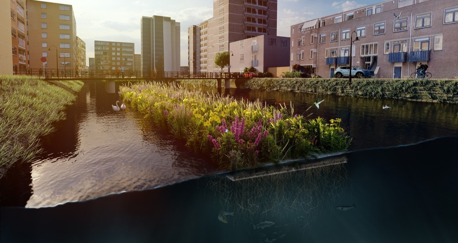 Samen met Rijkswaterstaat en Nautilus Eco-Solutions heb ik bijgedragen aan de aanleg van ongeveer 1.000 m² drijvend groen in de historische binnenhaven Buizengat.