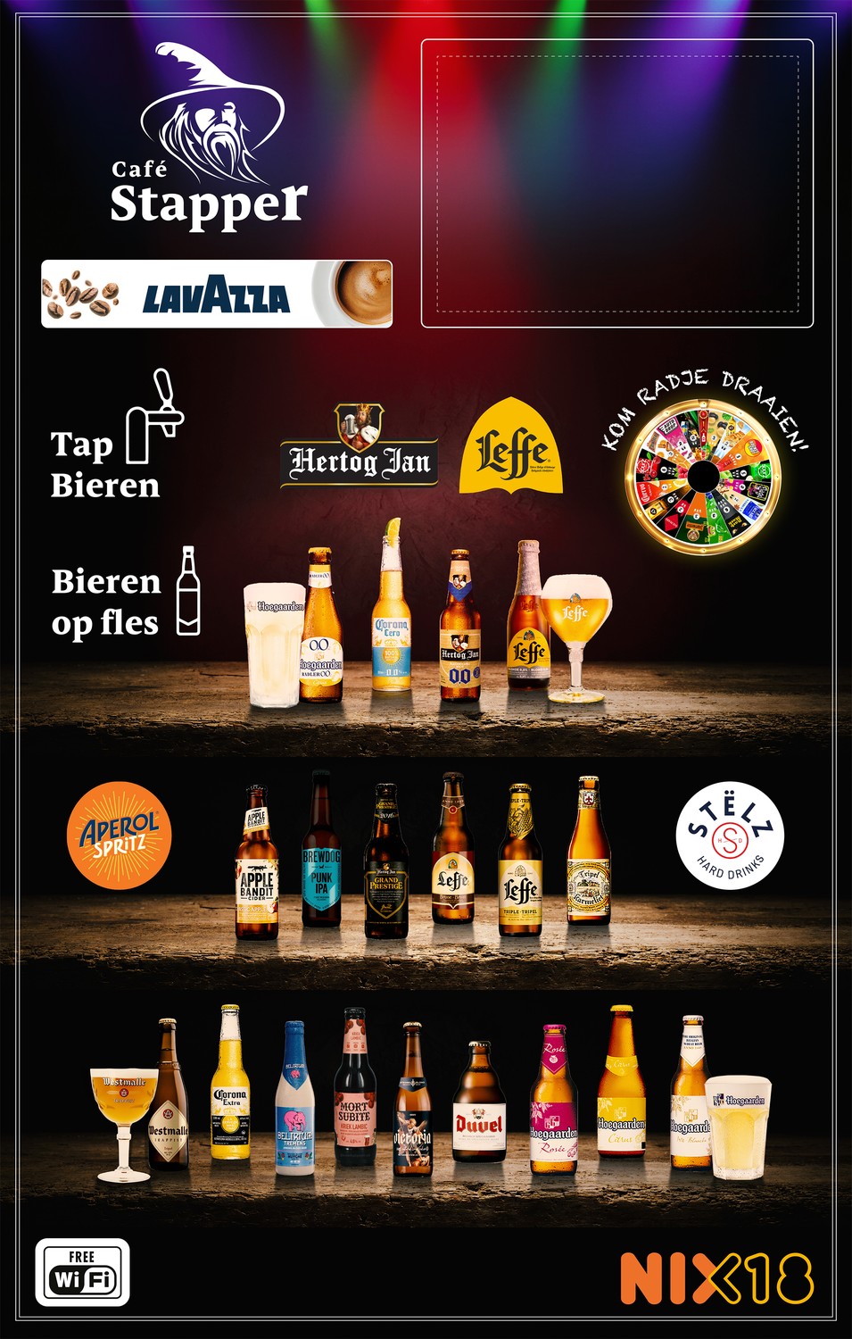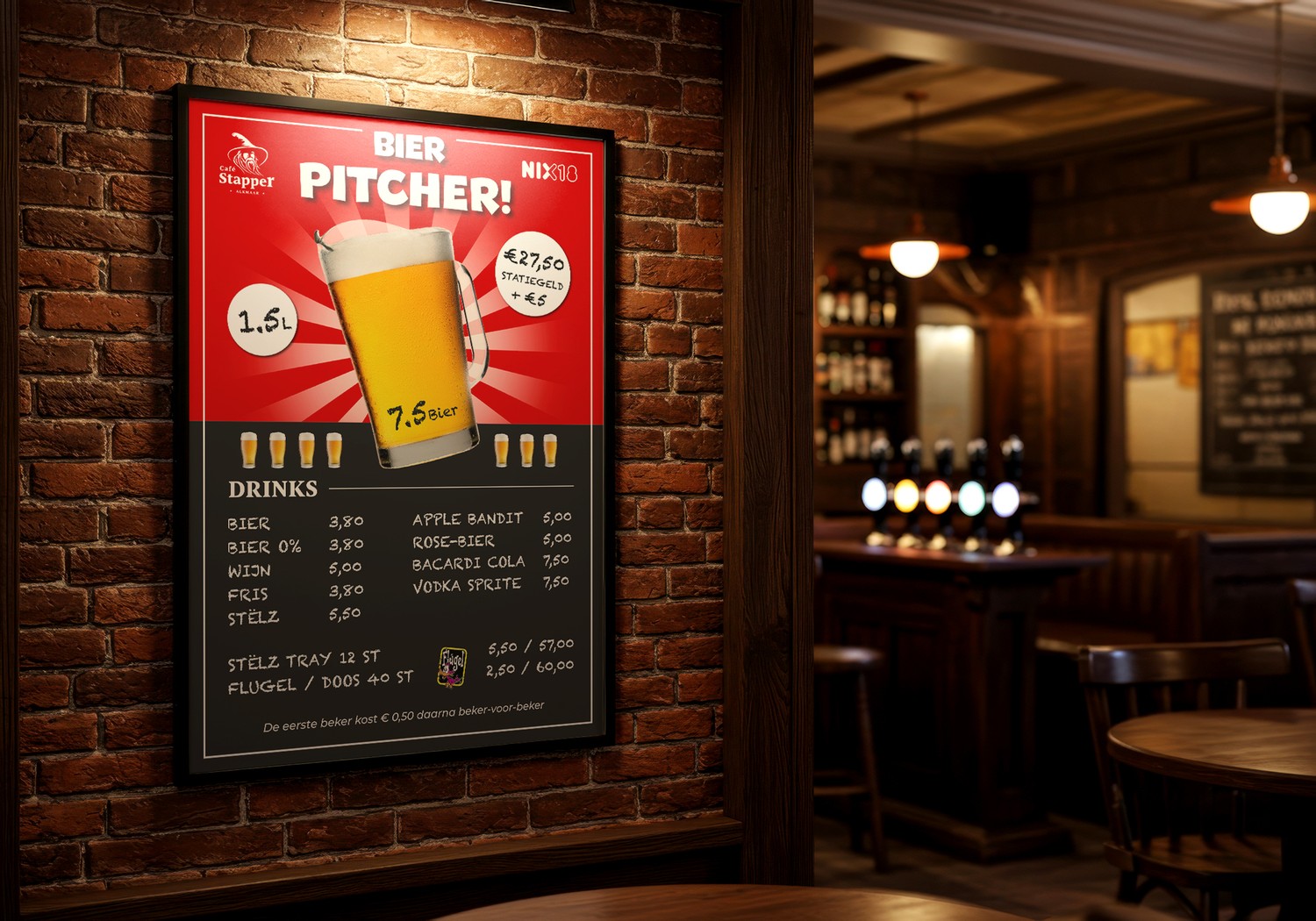 Op basis van deze nieuwe identiteit heb ik een breed scala aan drukwerk en fysieke uitingen ontworpen. Hieronder vallen onder andere menukaarten, posters en doeken, waarbij sfeer, leesbaarheid en uitstraling centraal stonden. Daarnaast heb ik de bedrijfskleding ontworpen, zodat ook het personeel visueel onderdeel werd van de nieuwe merkidentiteit.