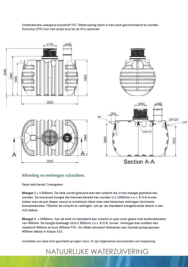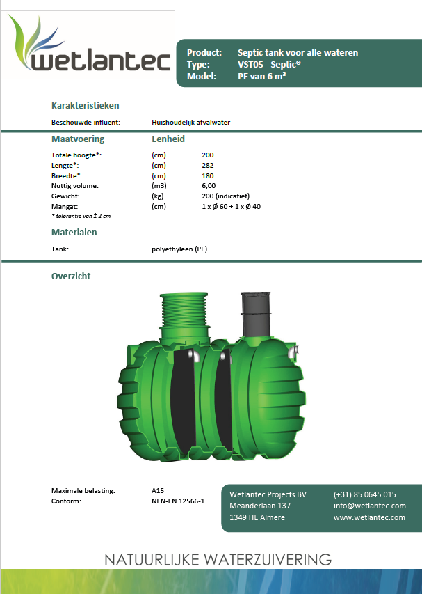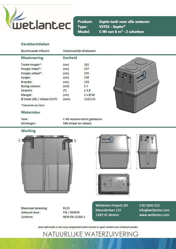 Wanneer een pompput met effluentpomp nodig is om het gezuiverde water van de nieuwe VST naar het oppervlaktewater te verpompen, …